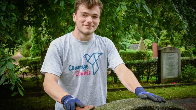 Pflegeeinsatz auf dem Eisenacher Hauptfriedhof bei einem internationalen Workcamp des Volksbundes Deutsche Kriegsgräberfürsorge e. V.. „Courage Counts” war das Motto für 70 Jahre Volksbund-Jugendarbeit (Bild: Volksbund Deutsche Kriegsgräberfürsorge e. V.)